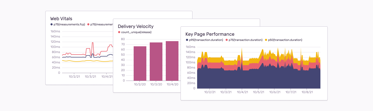 Choosing "Releases (sessions, crash rates)" allows you to query properties specific to a release of your application, primarily session data. Choose this dataset if you want to display healthy, errored, and crashed sessions and crash rates for your releases or projects on your dashboard. Some example widgets using this dataset include: