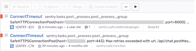 Now all ConnectTimeout events will get a fingerprint of connect-timeout-type and will get grouped into a single issue, regardless of stack trace. Note that this only applies to future events.